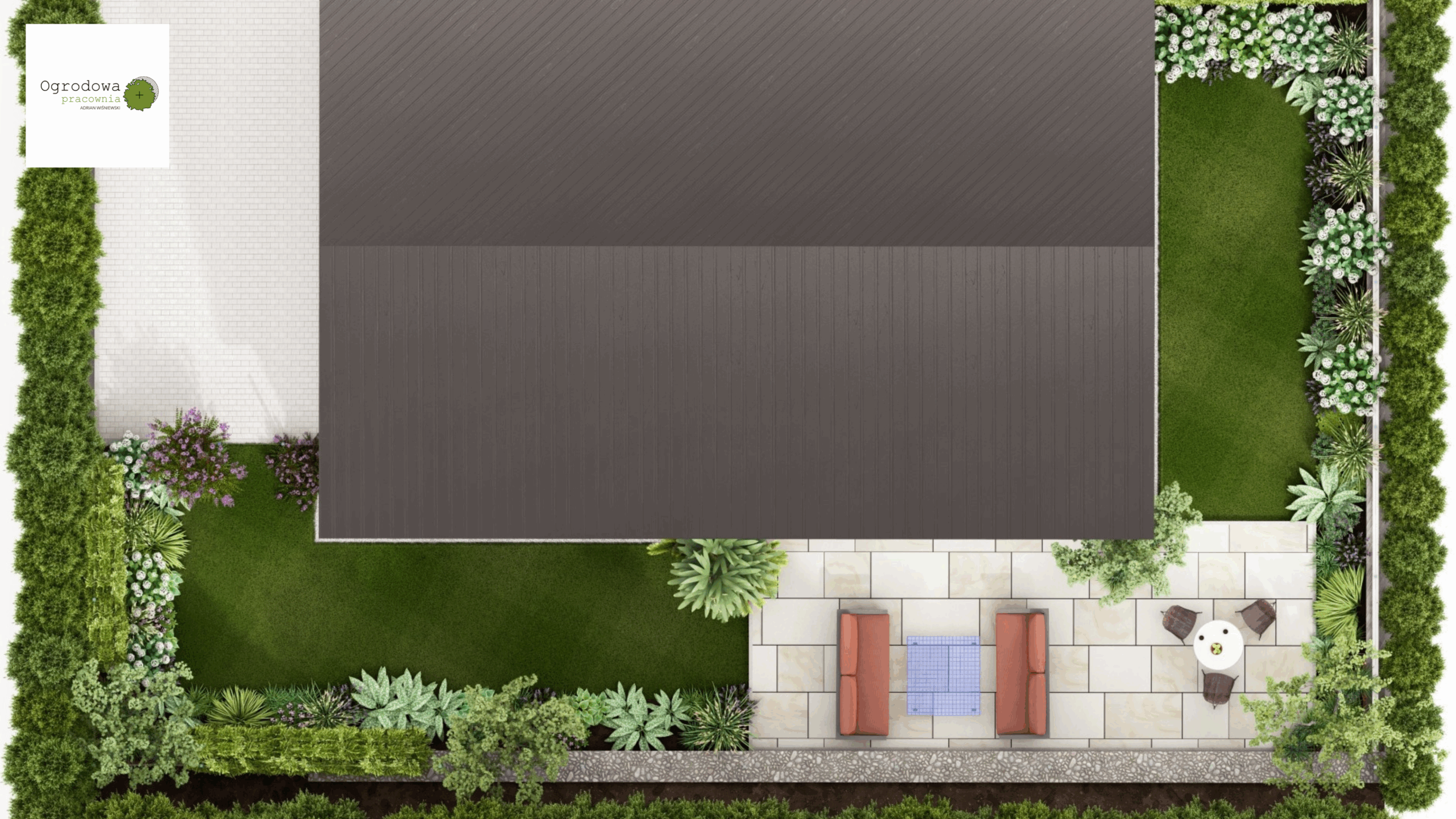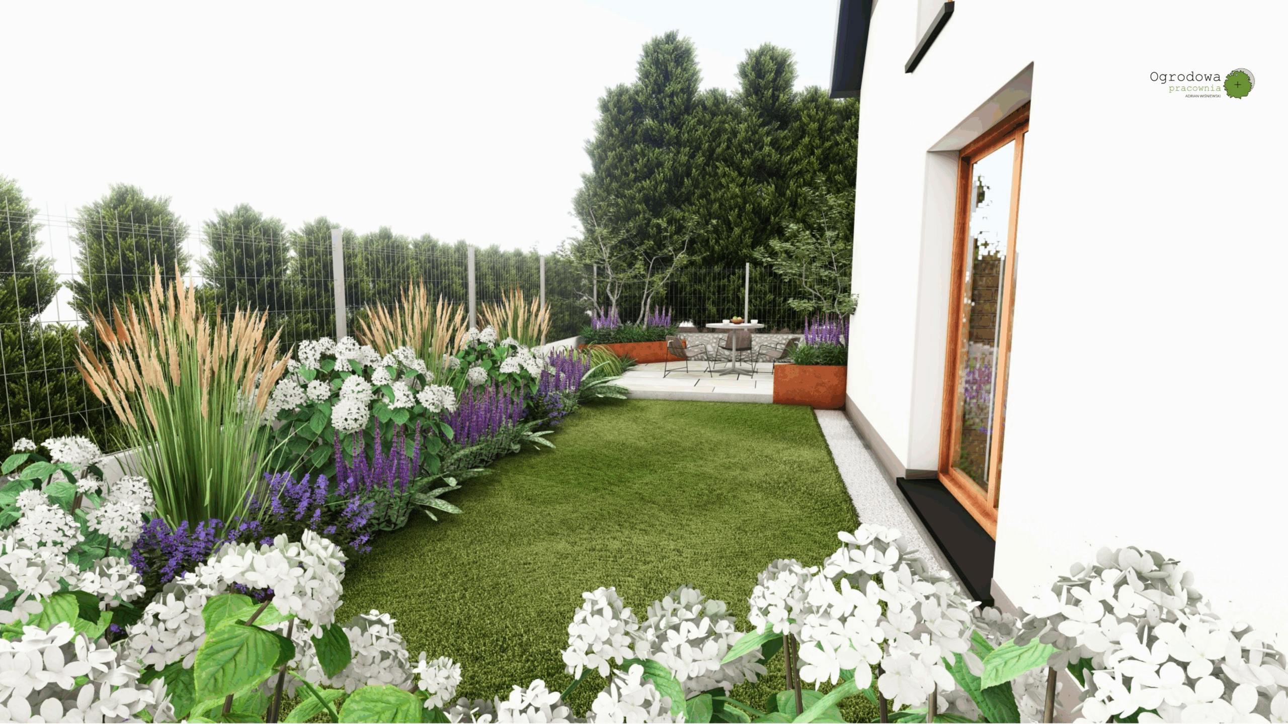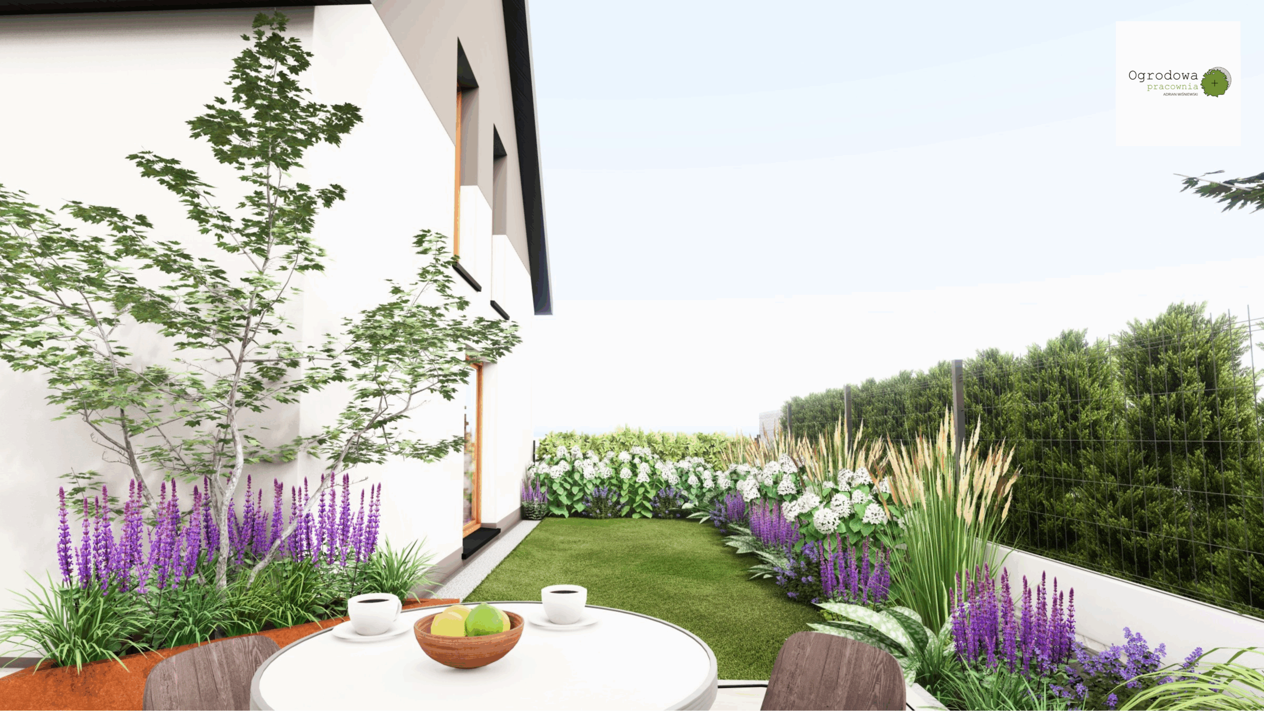 Projekt tego ogrodu łączy w sobie funkcjonalność, komfort użytkowania i naturalistyczne założenia. Strefowy układ przestrzeni pozwala na maksymalne wykorzystanie terenu i stworzenie miejsca dopasowanego do różnych potrzeb mieszkańców.